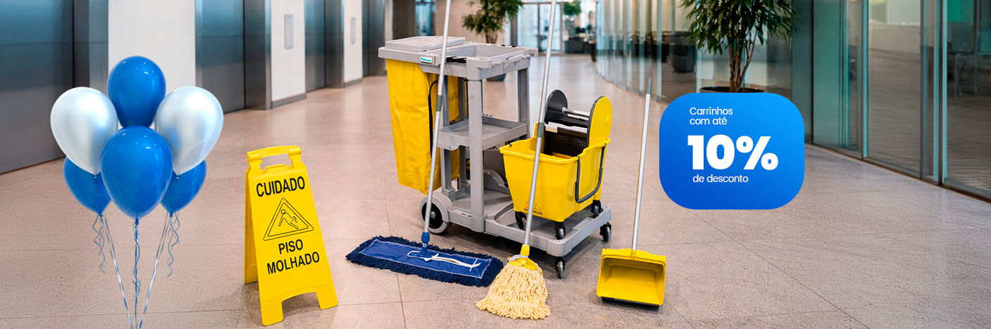 Carrinho de Limpeza Profissional com Suporte para Equipamentos