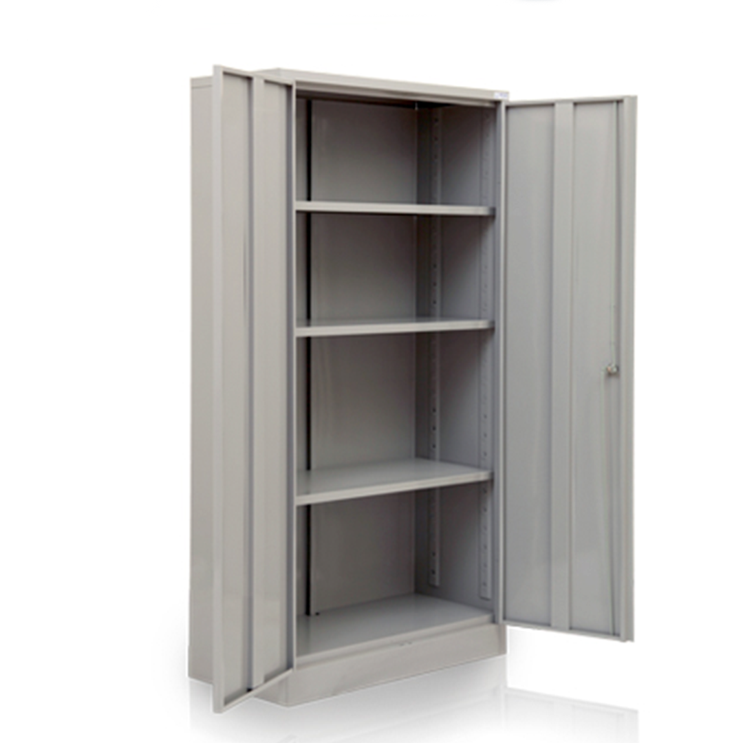 Possui 4 prateleiras internas reguláveis, 6 dobradiças tipo pivô e estrutura firmemente apoiada ao piso, em todo o perímetro da base, oferecendo grande estabilidade. Indicado para ambientes corporativos, industriais, escolares e hospitalares.