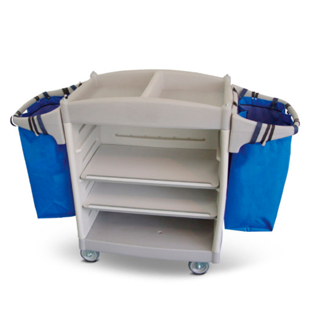 Com design funcional e estrutura robusta, o carro permite o transporte simultâneo de roupas limpas e sujas, facilitando a rotina de camareiras e equipes operacionais em hotéis, pousadas, hospitais e ambientes similares.