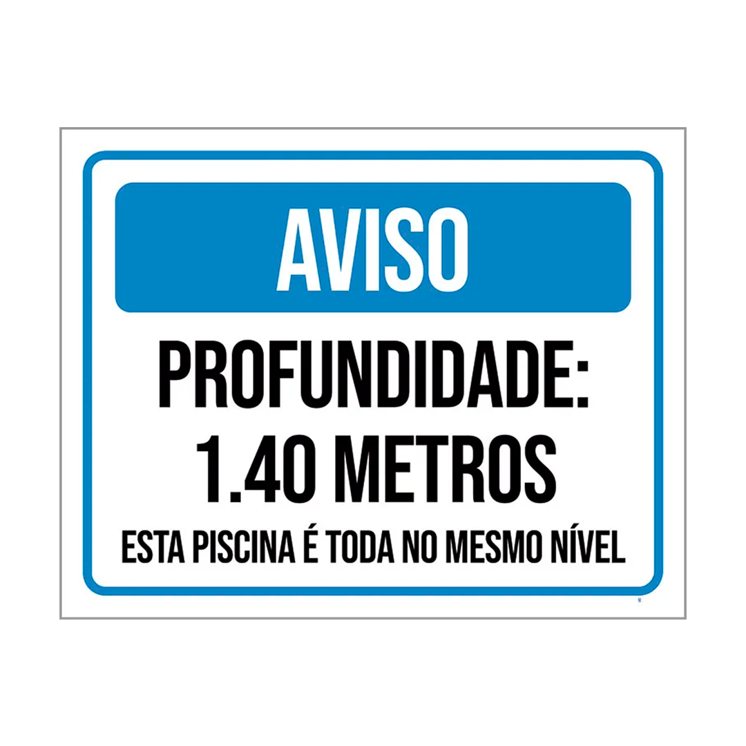 Placa de Aviso – Profundidade 1,40 m é ideal para garantir segurança, orientação e conformidade em áreas de piscina, sendo amplamente utilizado em condomínios, clubes, academias, hotéis e áreas de lazer.
